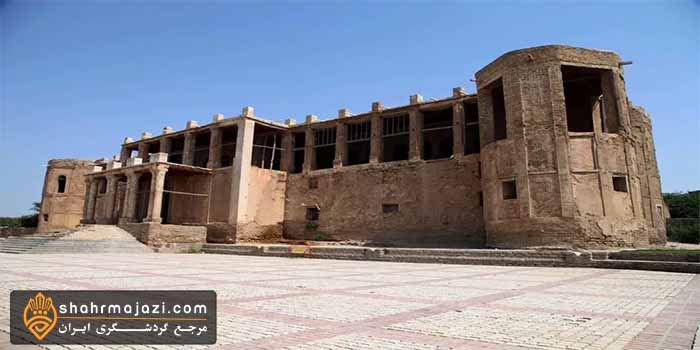 عمارت ملك كه در قسمت جنوبی شهر واقع شده، چند بخش دارد؛ پیشخوان، یكی از این بخشهاست و شامل فضای باز و گستردهای میشود كه پیونددهندهی فضای شهر به این مجموعه است و از عقب به سكوی سردر و عمارت اصلی میرسد.بخش دوم این مجموعه، سكو است كه شامل یك سفره عظیم و یك ردیف پلهی متصل به بنای اصلی میشود.بخش سوم عمارت نیز سردر و دربرگیرندهی فضای ایوانمانند همراه سه جفت ستون است كه به ساختمان اصلی متصل میشوند. یك در بزرگ از چوب آبنوس با تزیینات فلزی نیز در این بخش وجود دارد.عمارت اصلی، بخش چهارم و عظیمترین بخش مجموعه است كه در دو طبقه با دیوارهای نقاشیشده ساخته شده است. سالن پایین این بخش برای ملاقاتهای رسمی ملكالتجار و طبقهی بالا برای ضیافتهای خصوصی او ساخته شدهاند. در اینباره یك باستانشناس گفت: با وجود آنكه بخشهایی از این بنا توسط سازمان میراث فرهنگی و گردشگری مرمت شده، اما بهدلیل مشكلات مالی، طبقهی دوم آن درحال تخریب است.علاوه بر این بخشها، این مجموعه باغهای تودرتویی دارد كه با چند ردیف دیوار از هم جدا شدهاند و هر كدام، ورودی جداگانهای برای ارتباط با دیگر بخشها و فضای خارج دارند. تمام این باغها نیز تزیینات و فضاسازیهای متفاوتی داشتهاند