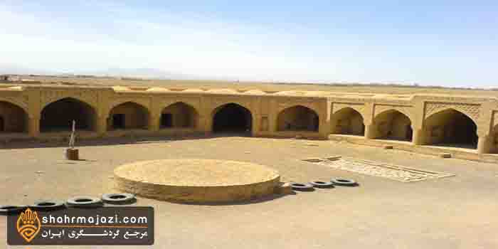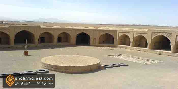 اين بناي تاريخي به عنوان يكي از زيباترين كاروانسراهاي دوره قاجار محسوب مي گرددو ساخت آن به صورت چهارضلعي از بيرون و به صورت هشت ضلعي در حياط مي باشد. ورودي اصلي بنا در قسمت جنوبي قرارداشته كه پس از عبور از دري بزرگ به راهروي كه به صورت گنبدي پوشيده شده است مي رسيم .گنبد راهرو با تزئينات آجري نماي زيبائي يافته است دريك قسمت از اين بنا دردوسمت ورودي اصلي و محوطه اي اختصاصي جهت بزرگان و حاكمان تعبيه شده است كه كاملا" خصوصي بوده و داراي چندين اتاق و بادگير بوده و از بخشهاي تابستاني و زمستاني ساخته شده است .نماي ديوارهاي صحن نيز با آجر، نماكاري شده وجرزهاي آن درپائين به صورت نيم دايره ودربالا به صورت صاف ديده مي شود