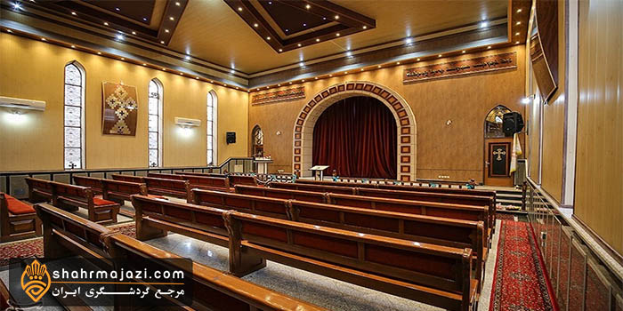 2. معماری داخلی: وارد شدن به داخل کلیسا، به یک فضای مراسم زیبا و آرام با نورپردازی ملایم و دیوارهای تزئین شده با نقاشیهای دینی میانجامد. اتاق مراسم کلیسا با استفاده از ستونها و گنبدهای بلند طراحی شده است و یک احساس ارتفاع و آرامش را به بازدیدکنندگان منتقل میکند. نقاشیهای دینی روی دیوارها و سقف کلیسا، صحنههای مذهبی و تصاویر مرتبط با ایمان مسیحی را نشان میدهند و جلوهای خاص به فضای داخلی کلیسا میبخشند.